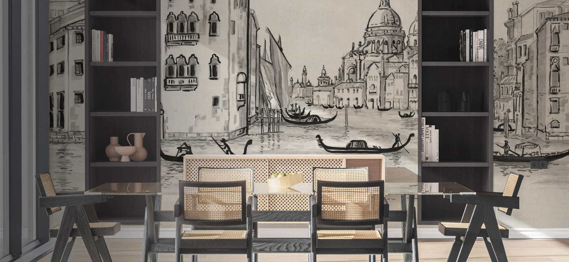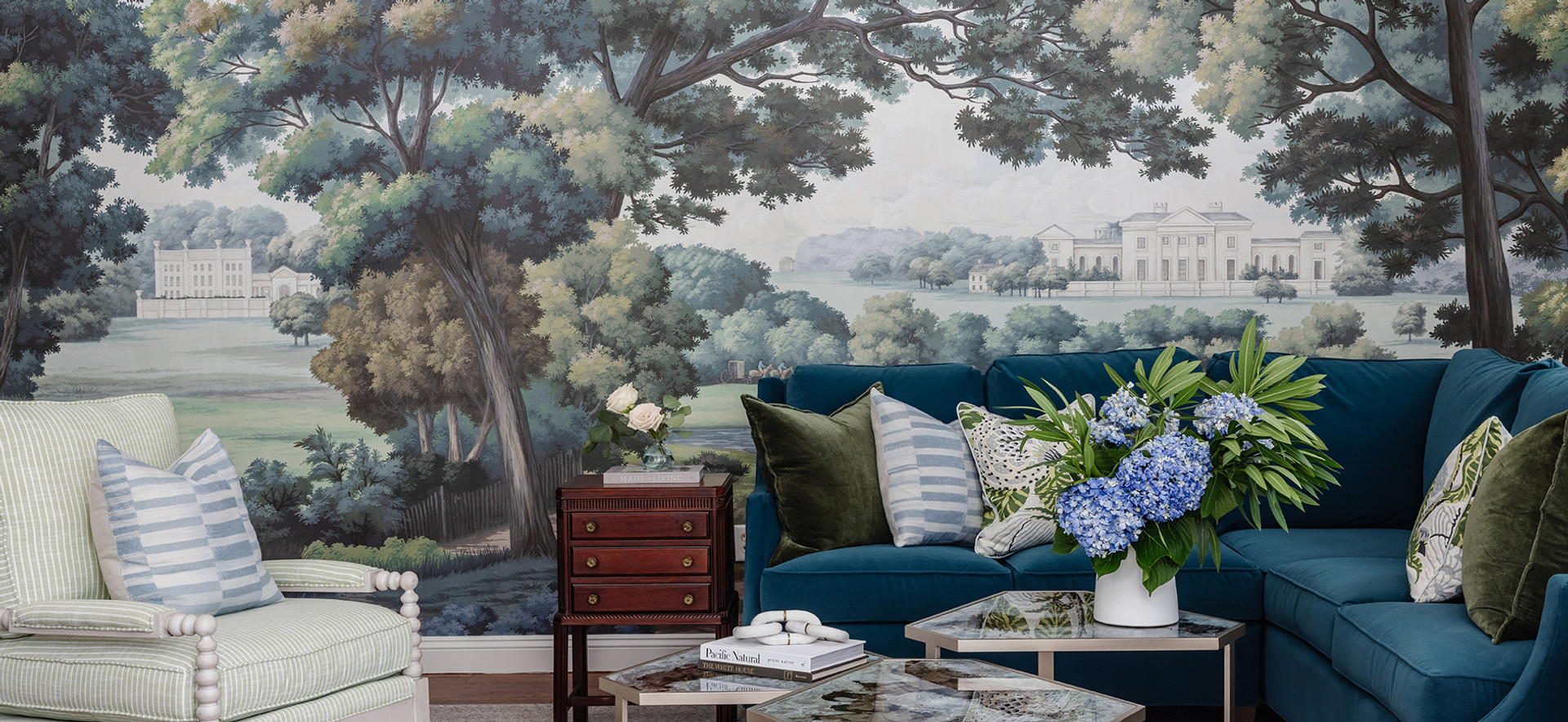 Introducing the Lillian August for Paul Montgomery Mural Collection | Mural Shown: Richmond | Interior Design by: Lillian August